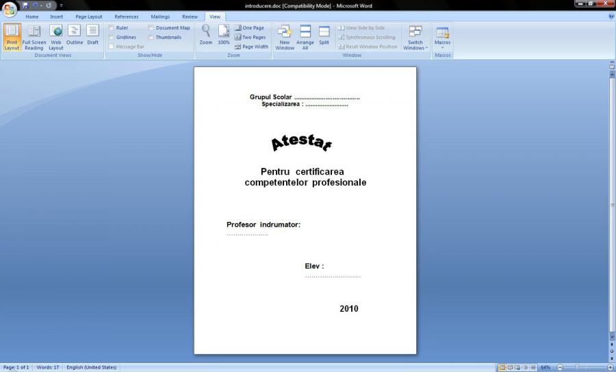 Cel mai bun atestat informatica in Word In categoria Atestate | Word